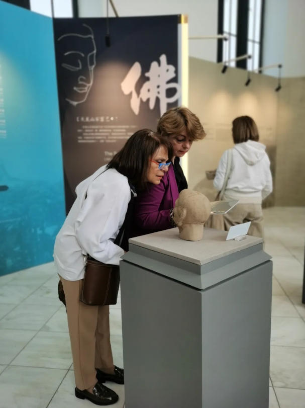 此次展览还有首次亮相海外的2021年回归天龙山石窟原属地的第一尊流失佛首1:1复制品、天龙寺遗址出土的6件石刻造像复制品。