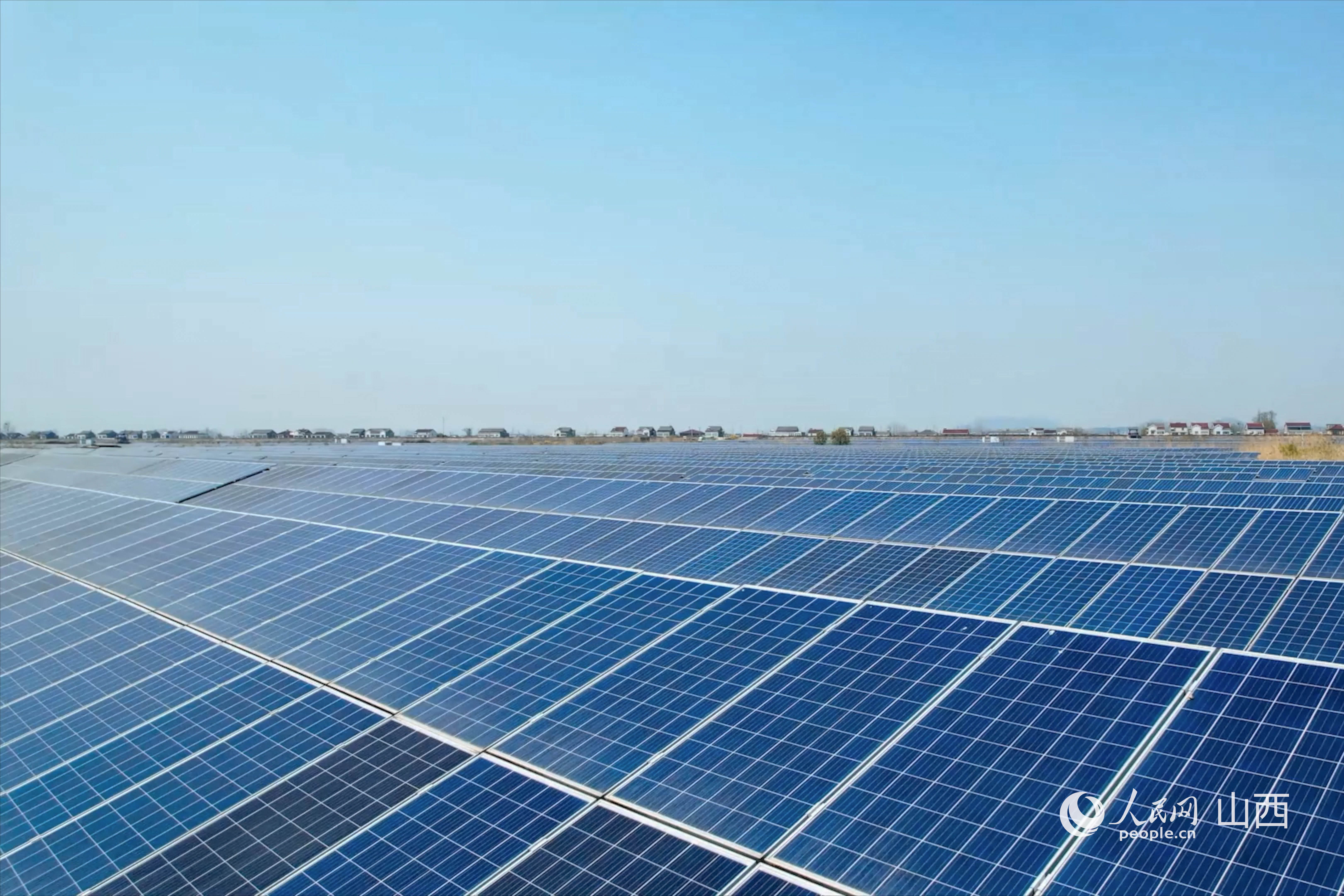 全县新能源装机总规模达2439.75MW,排名全省前三、位居吕梁市第一。峰峦绵亘,一座座白色的风力发电机昂首矗立;一排排成片陈列的光伏板如同“蓝色海洋”,整齐划一地铺展至远方。这座有着千年历史的古城,主色调也在向“绿”悄然转变。