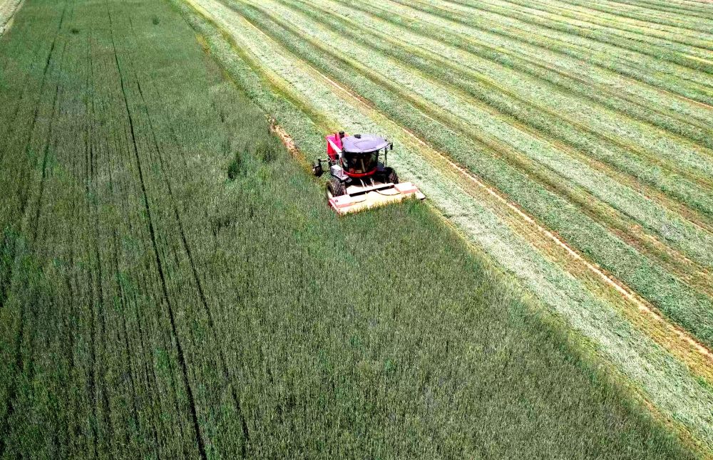 收割机正在收割饲用小黑麦。新华社记者 魏飚 摄