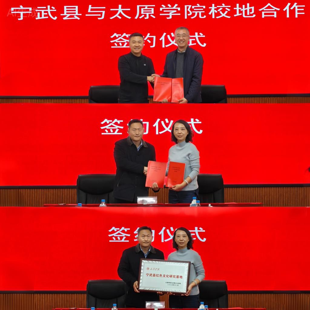 会上,太原学院科学技术工作部部长杨立波、宁武县委常委、常务副县长赵栋代表校地双方签署合作框架协议,太原学院马克思主义学院院长翟婷婷、中共宁武县委党史研究室主任邵俊峰代表双方签署合作协议,并举行授牌仪式,双方相关单位负责人共同见证了协议签署。