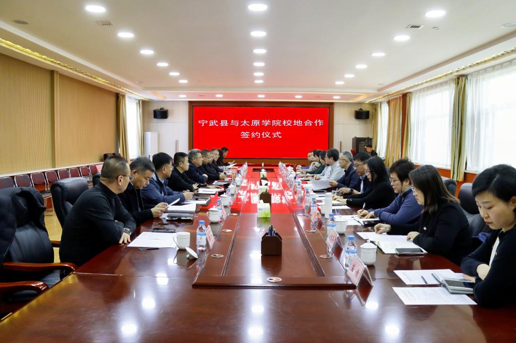 12月5日,太原学院与宁武县人民政府举行校地合作协议签约仪式。太原学院党委副书记陈显久,宁武县委副书记、县长武强分别讲话,会议由县委常委、组织部部长陈亚宁主持。