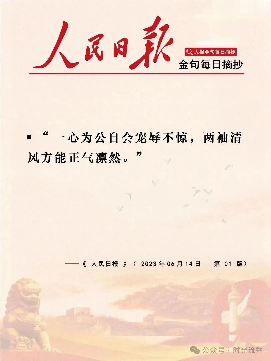 💎“一心为公自会宠辱不惊,两袖清风方能正气凛然。” 一一《人民日报》 ( 2023年06月14日 第 01版)