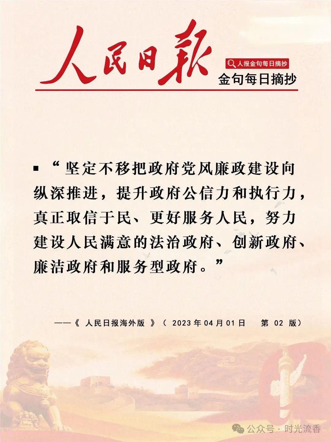 💎坚定不移把政府党风廉政建设向纵深推进,提升政府公信力和执行力,真正取信于民、更好服务人民,努力建设人民满意的法治政府、创新政府、廉洁政府和服务型政府。 ——《 人民日报海外版 》( 2023年04月01日 第 02 版)