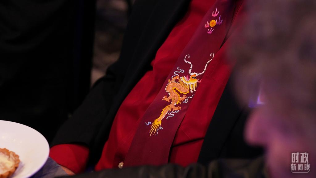 △年逾70岁的李·加德纳,是“鼓岭故事”主人公密尔顿·加德纳的侄孙。当天他特意佩戴了一条绣有“中国龙”的领带。(总台央视记者石丞、国广记者李晋拍摄)