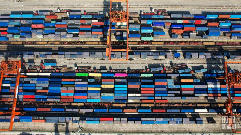 △2024年4月,乌鲁木齐国际陆港区中欧班列“天山号”畅行丝路。(图/视觉中国)