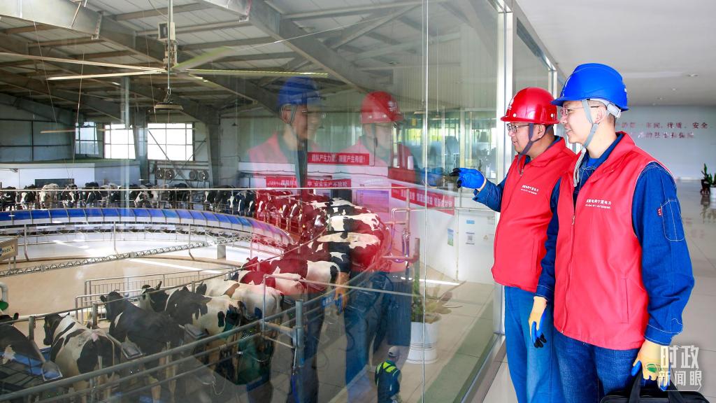 △宁夏银川,电力员工深入奶牛养殖企业,助力数智化养殖。(图/视觉中国)