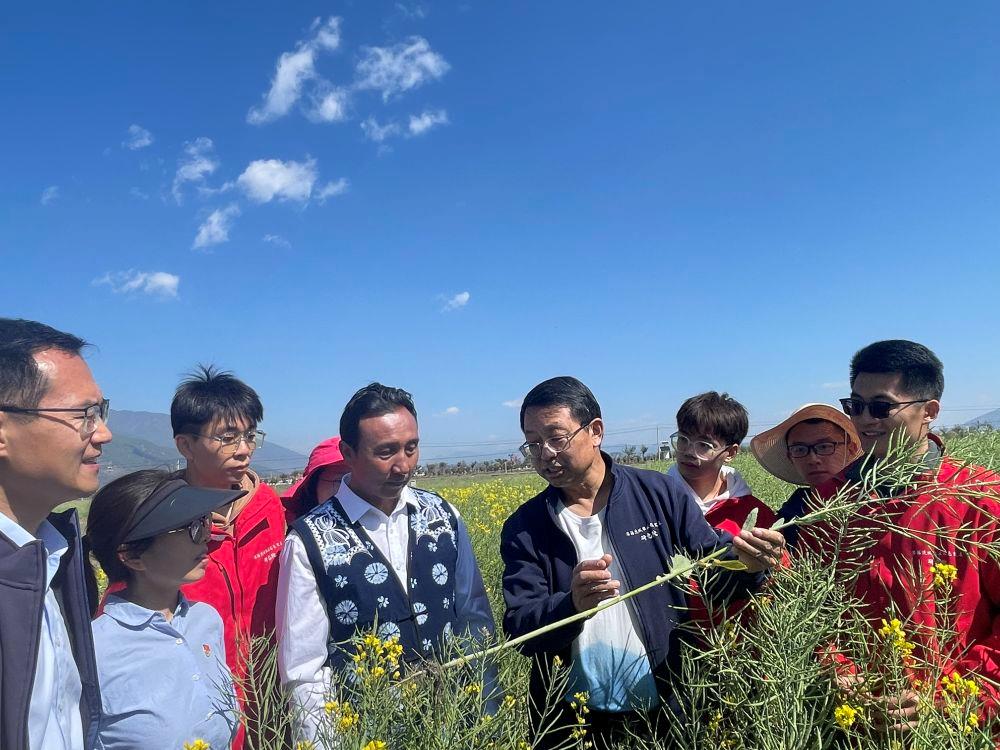 △中国农业大学教授张福锁(右四)带领科技小院师生与农户交流种植心得。