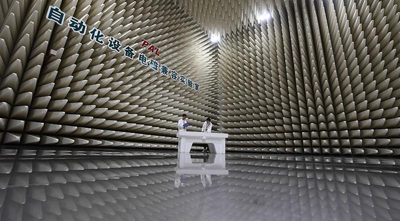 △2023年7月7日,在南瑞集团有限公司自动化设备电磁兼容实验室,科研人员在进行辐射发射实验准备工作。
