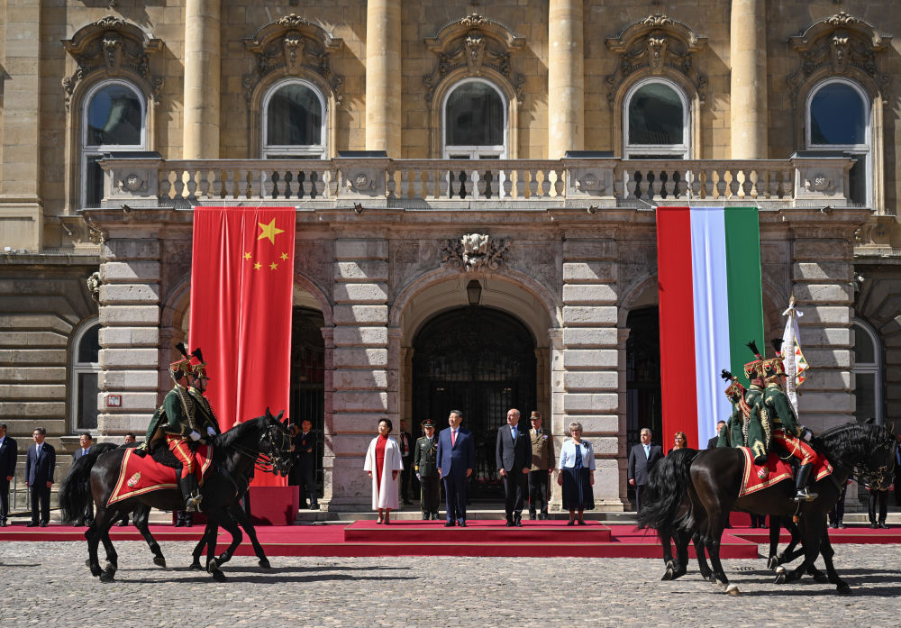 当地时间5月9日,习近平主席在布达佩斯出席匈牙利总统舒尤克和总理欧尔班共同举行的隆重欢迎仪式。新华社记者 谢环驰 摄