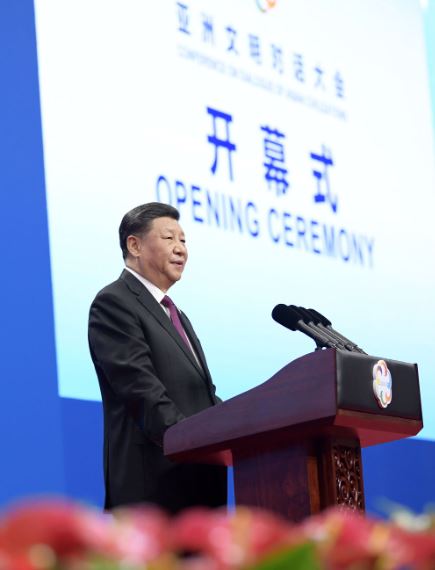 2019年5月15日,习近平主席在北京国家会议中心出席亚洲文明对话大会开幕式,并发表题为《深化文明交流互鉴 共建亚洲命运共同体》的主旨演讲。新华社记者 李学仁 摄