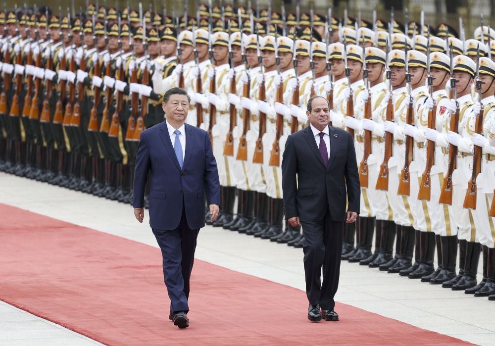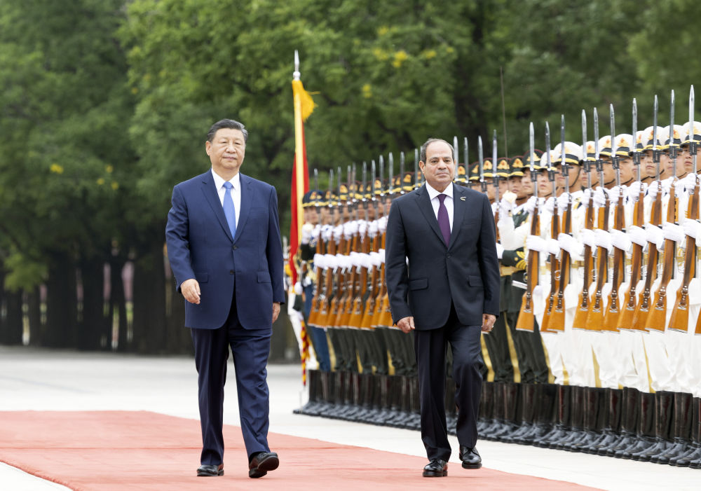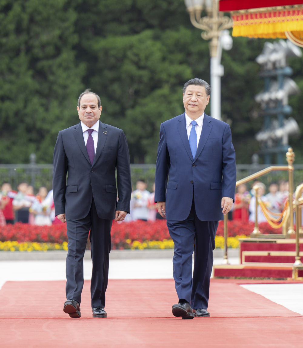 5月29日下午,国家主席习近平在北京人民大会堂同来华出席中国-阿拉伯国家合作论坛第十届部长级会议开幕式并进行国事访问的埃及总统塞西举行会谈。这是会谈前,习近平在人民大会堂东门外广场为塞西举行欢迎仪式。新华社记者 刘卫兵 摄