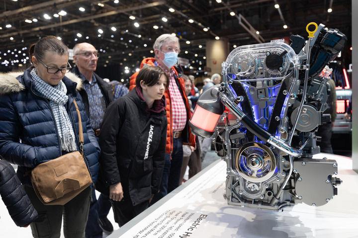 △观众在瑞士举行的2024年日内瓦国际车展上参观比亚迪新款发动机。