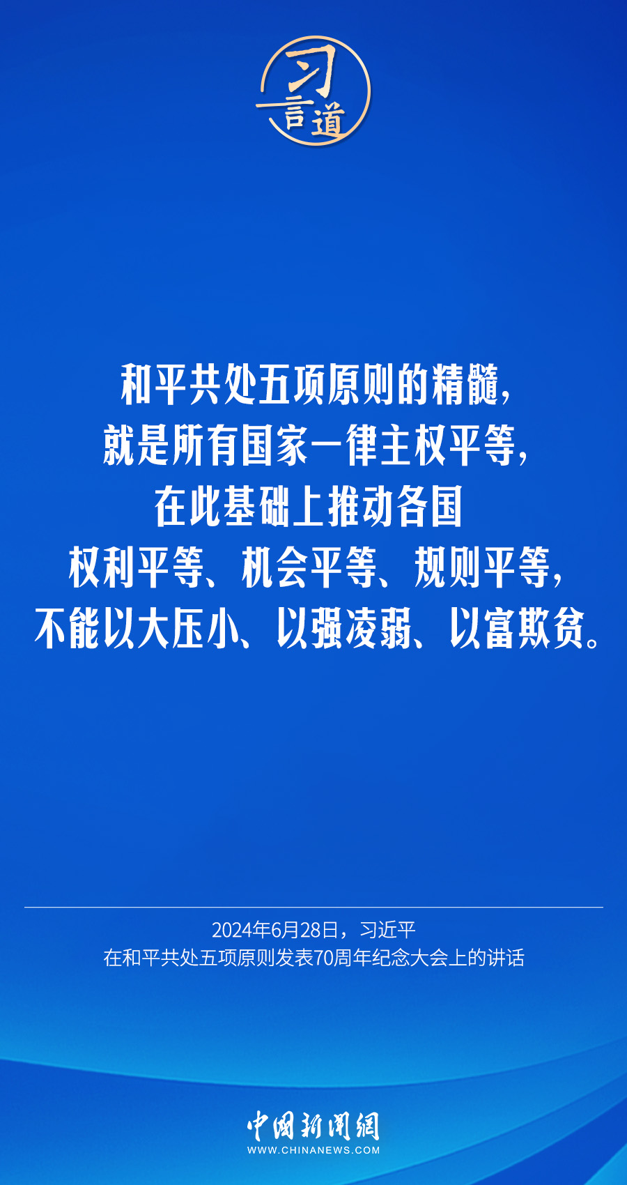 6月28日,国家主席习近平在北京人民大会堂出席和平共处五项原则发表70周年纪念大会并发表重要讲话。习近平指出——