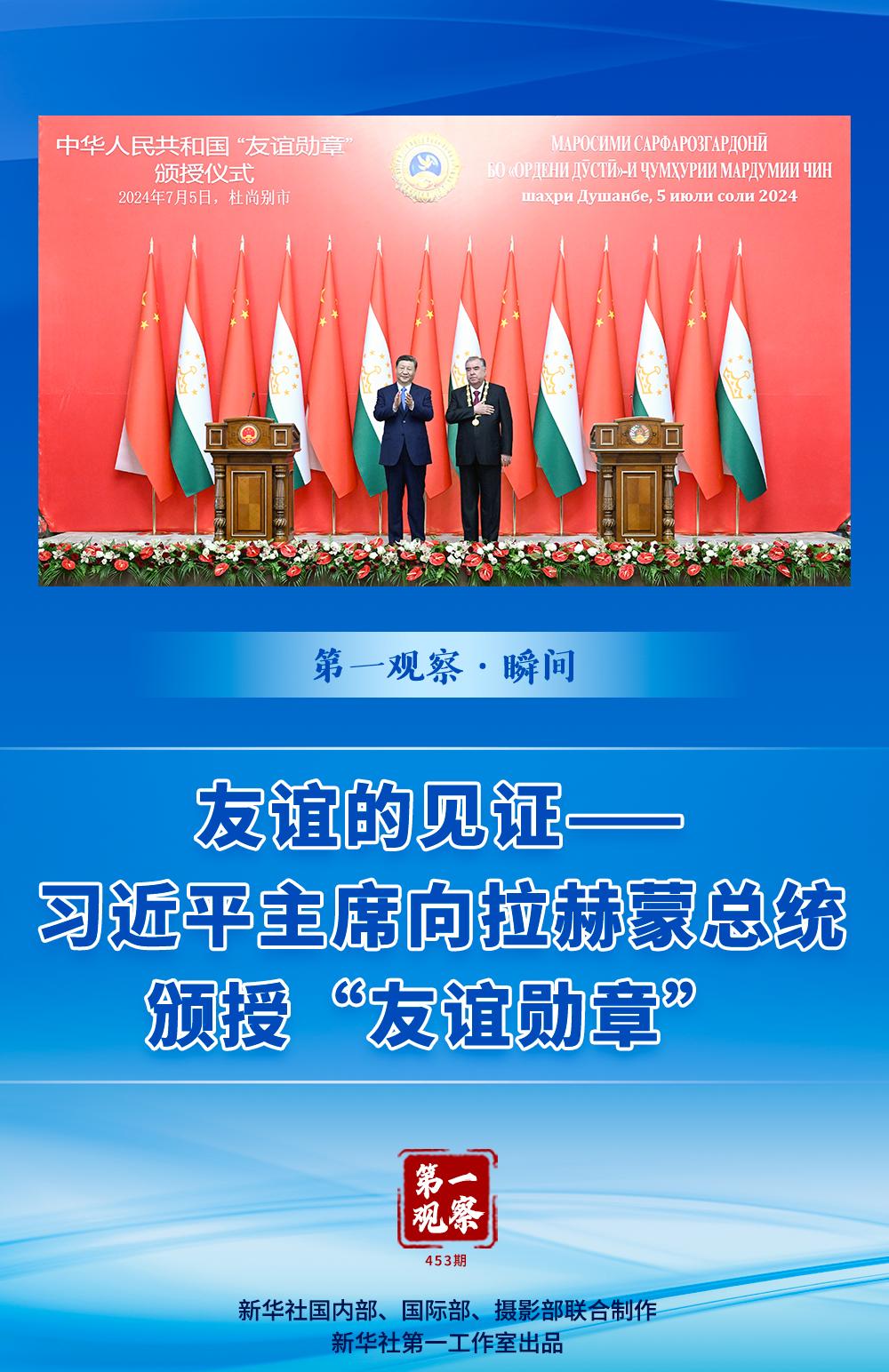 这是中方首次在境外颁授“友谊勋章”,是为表达中国人民对拉赫蒙总统和塔吉克斯坦人民友好感情作出的特殊安排。授勋仪式举行过程中,全体与会嘉宾十多次起立,热烈的掌声经久不息,现场气氛令人感动。