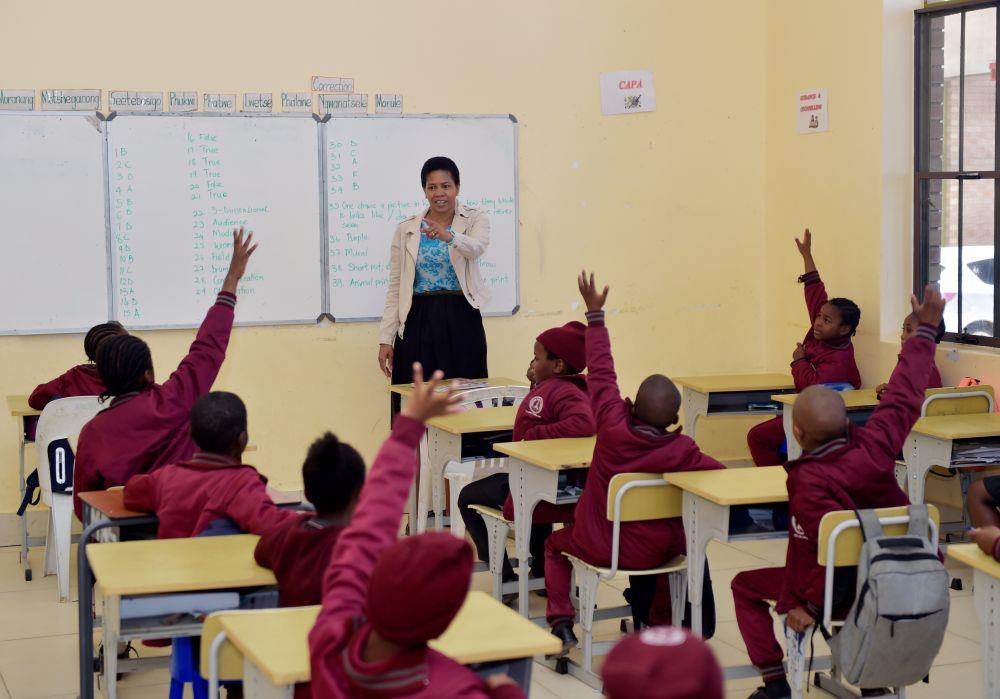 △在中国援建的博茨瓦纳莫帕尼小学,学生们正在上课。
